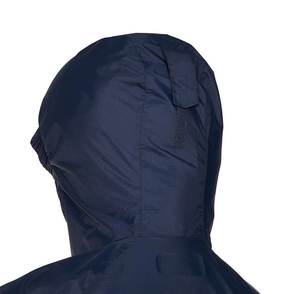 - Kapuze mit Schirm, Volumenregulierung hinten (mit Klettverschluss) und elastischen Einsätzen an den Seiten