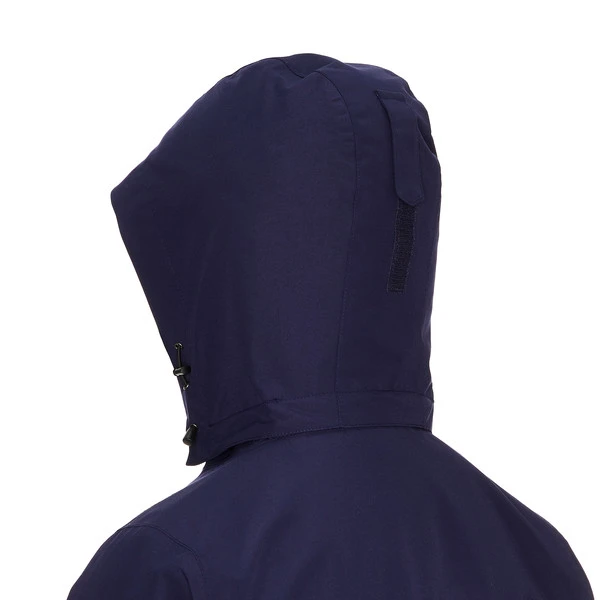 - Abnehmbare Kapuze mit Volumenregulierung vorne und hinten (dort mit einfachem Klettverschluss)