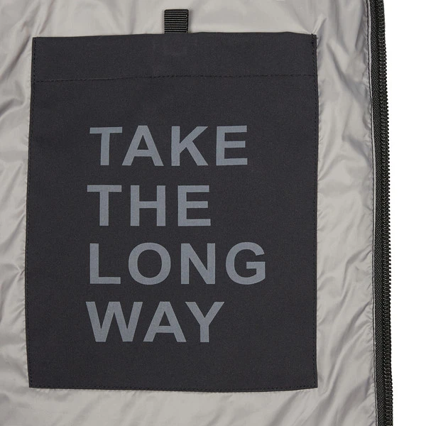Sowohl das Außenmaterial als auch das Innenmaterial und die Wattierung bestehen komplett aus recyceltem Material. So werden wertvolle Ressourcen geschont. Außerdem ist die wasserabweisende Ausrüstung frei von umweltschädlichem PFC.