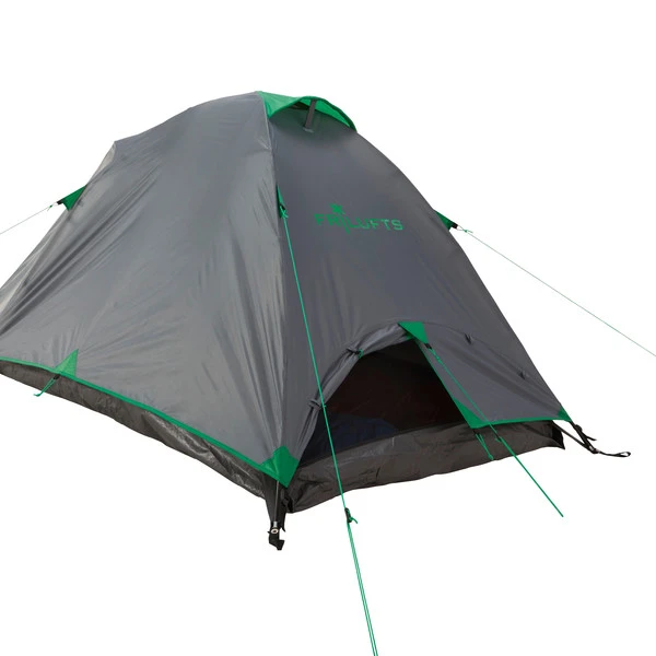 Günstiges Einsteigerzelt für zwei Personen, das sich ideal für erste Wanderungen und andere Outdooraktivitäten eignet. Der Innenraum ist großzügig bemessen und bietet zwei Personen ausreichend Platz.