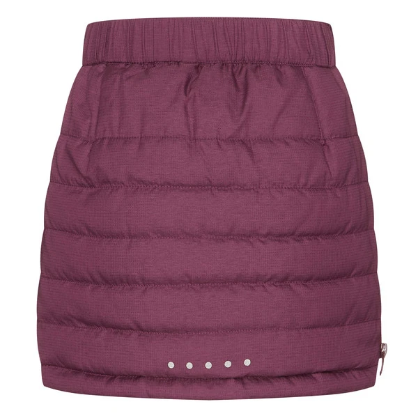 Der Rock hat einen angenehm weichen Griff, dank seiner dezenten Ripstop-Struktur ist er aber dennoch recht robust. Durch seine dauerhaft wasserabweisende, PFC-freie DWR-Imprägnierung hält der Rock zudem auch mal etwas Schneekontakt oder einen kurzen Regenschauer aus, ohne dass das Material sofort durchnässt. Innen hält eine atmungsaktive Kunstfaserisolierung die Beine der Mädels selbst bei lausigen Temperaturen angenehm warm.